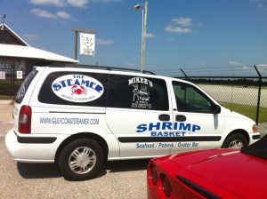 WHAT A RIDE!… Now KJKA is known to have pretty snazzy courtesy cars as Paul and I had found out in the past when we were handed the keys to a very new, bright and shiny yellow Camaro! We were expecting something pretty great this time as well, when we were handed the keys to the courtesy vehicle. Paul and I went to get the car while Mike was finishing up some business inside. While we were indeed happy to have a courtesy car at our disposal for about an hour, we were a little disappointed that this was not the usual “status quo” courtesy car we had come to expect from Jack Edwards. Although it was parked right next to a bright, shiny red Corvette, that’s as close as it came to being “snazzy”. A bright white van decorated with the words, “Shrimp Basket”, “Mikee’s – A Place for Seafood” and “the Steamer” proudly awaited us! The look on Mike’s face was priceless as he walked out of the FBO and saw us waiting for him in the van. Immediately, he yanked out his phone & snapped a picture of “Driver Paul” in the Van, while not even trying to conceal his fits of laughter. Regardless, we found our way to the Harbor Grill and enjoyed a fantastic meal while making new friends to boot on our day trip to the LA Riviera. Paul and Mike had the grouper sandwich, (I think) and Angel, Bob’s fiancee convinced me that if I really loved a wedge salad, that this was the best one to be found anywhere in the US. I have to admit I wholeheartedly agree and that this might also be the LARGEST one also, as I boxed up half of it. You gotta admit, that was some “well traveled lettuce” that accompanied me on the flight back home that day.