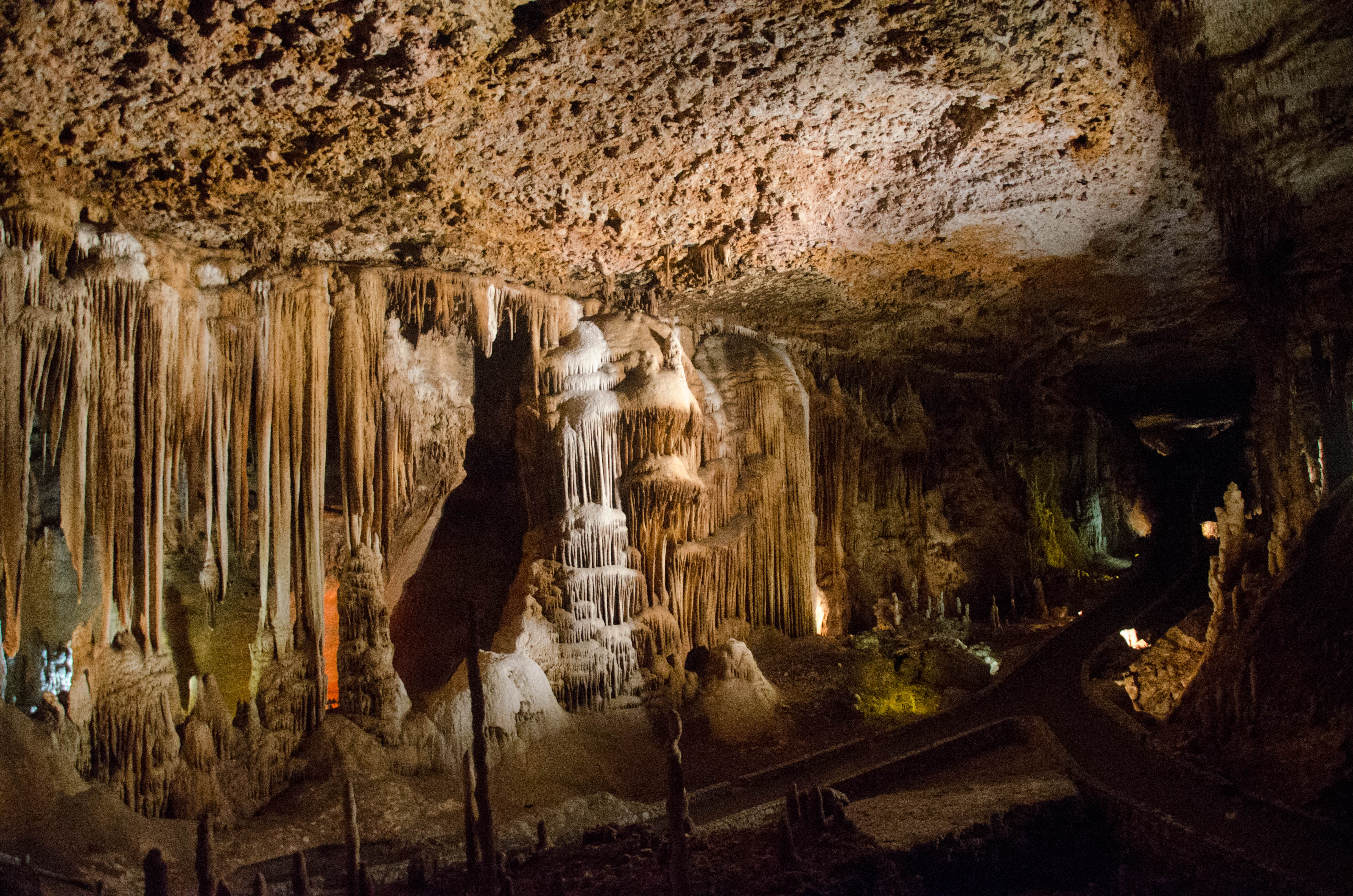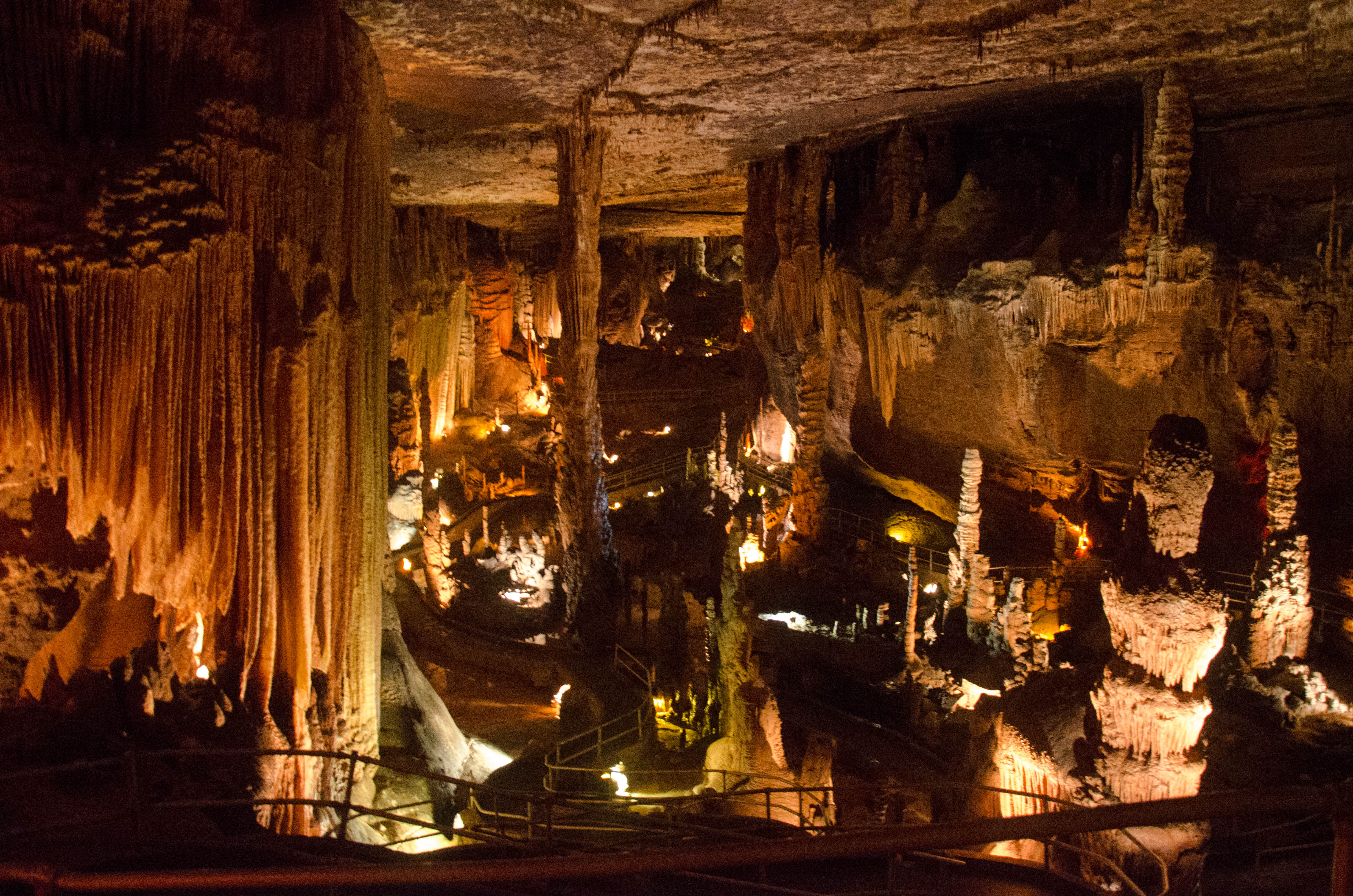 Blanchard Springs Caverns… So what do you do in the Ozarks when the weather is threatening and you can’t get on the water to fish? With one of the worst days for tornadoes in years forecast for Sunday, we figured the best place in the world to be was 200+ feet underground. I had researched a few places to go and came up with Blanchard Springs Caverns, which was just an hour or so down the road towards Mountain View. Since we had been to a few caverns throughout the years and had not been terribly impressed, our expectations were not too high. WOW, what a beautiful place! This was not at all like the other places we had been… no tight spaces with small corridors, but a huge underground theatrically lighted wonder of nature. They have three different tours, but only offer the easy (1 hour) upper level tour this time of year. The dim lighting did make photography a little challenging, but I eventually turned the ISO up to 3200 and got some pretty good photos… click on any of the photos for a larger view.