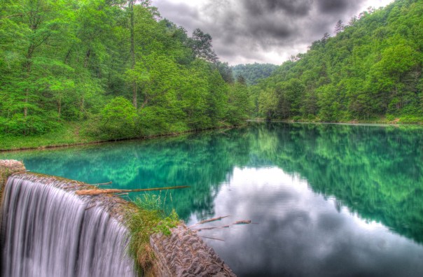 Further down, the stream feeds into Mirror Lake, a beautiful lake with a large stone dam at the end. Below the dam, the stream fed an old grist mill that was left on the banks but was not reachable this time of year. In this photo, I chose a more surreal process for the HDR, it seams to portray the looming weather conditions more appropriately and makes the mirror of the lake surface kick a little.